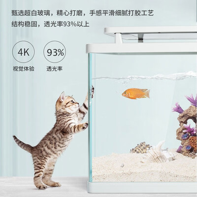 拥有93%透光率,呈现透亮高光的视觉效果,清晰查看鱼缸内部环境,带有触摸按钮,释放三色灯光,美轮美奂,提升家居氛围感。