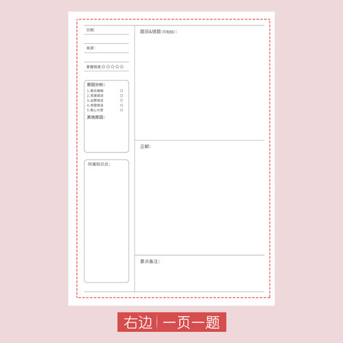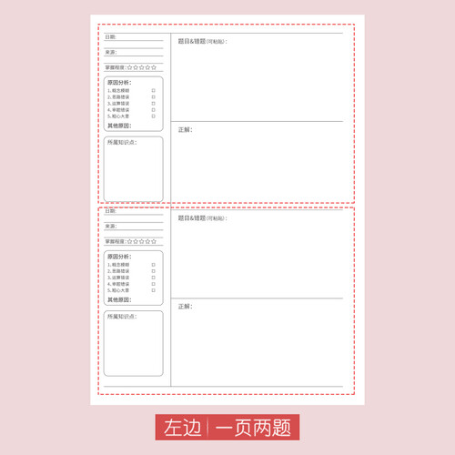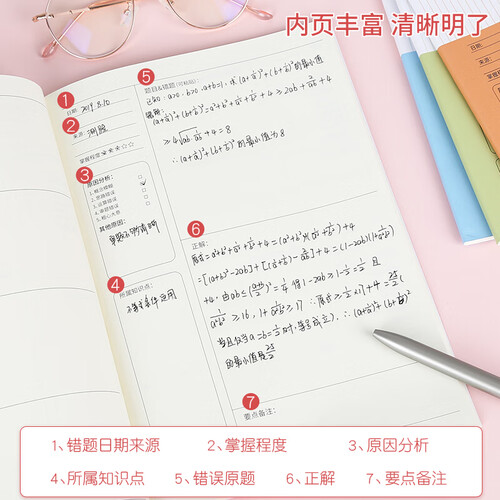 采用成熟的工艺装订而成,易于平摊方便书写,牢固耐用不易出现散页的情况。合理的内页布局,方便错题归纳,提高复习效率。