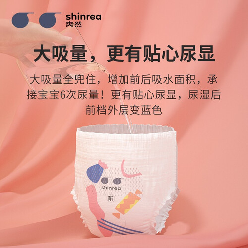 吸收芯厚度减薄了20%,吸收力提升了30%,吸收力超强,还增加了前后吸水面积,可以承接宝宝的6次尿量,屁屁好干爽。