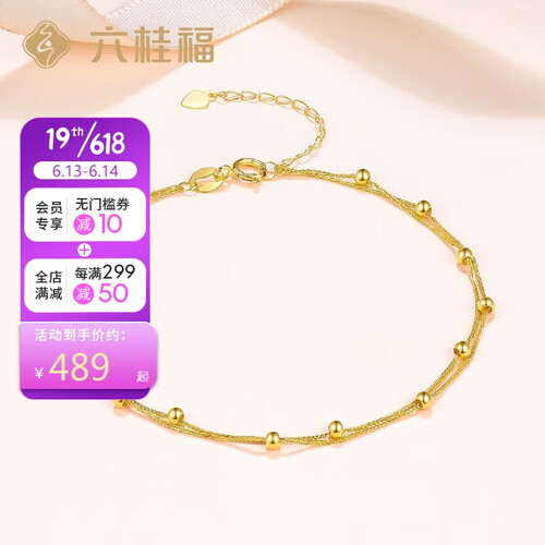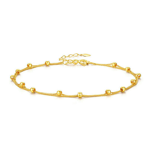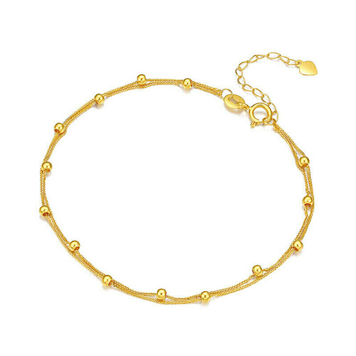 打磨光滑的双层细链,搭配小巧圆珠装饰,简约耐看,为腕间增添时尚点缀。精选黄18K金材质打造,光泽华丽,久戴如新。