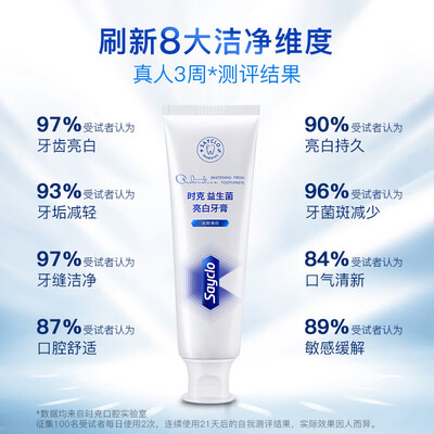 双重植物酵素加持,可强力分解牙垢,磨除牙菌斑,抛光提亮牙齿。弱酸配方温和无刺激,接近口腔酸碱度,有效预防蛀牙。