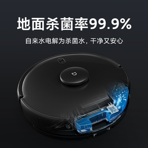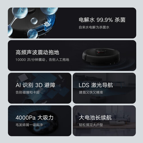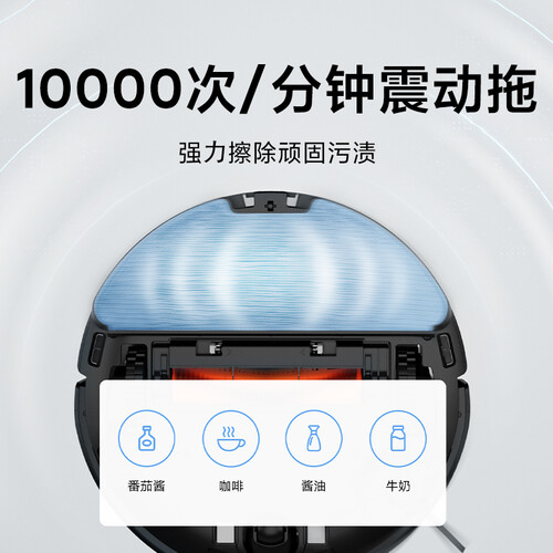 内置电解水装置,拖地时也能有效杀菌。搭载拖地设计清洁路径,模拟人工清洁,高频震动擦地,去除顽固污渍,扫拖除菌一步到位。
