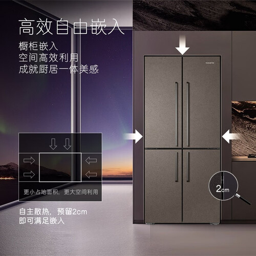 自由嵌入式设计,融合厨房风格,和橱柜平齐不占空间位置。一键掌控保鲜,海尔智家APP很智能,远程也能实时操控。