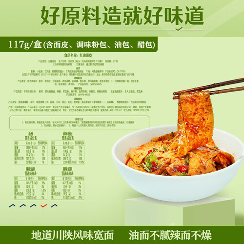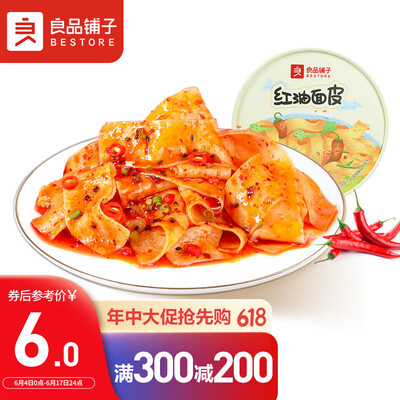 这款良品铺子干拌红油面皮,选用华北小麦粉做原料,经高温熟化工艺生产,表面轻薄透亮,口感鲜香酸爽,好吃又开胃。