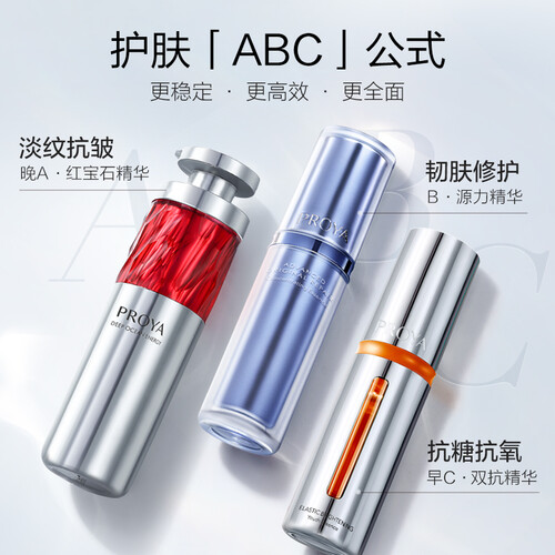 添加虾青素和抑糖成分的双抗精华,早上使用能改善暗沉,夜间使用红宝石精华,淡化细纹,紧致肌肤。辅以源力精华,修护强韧皮肤。