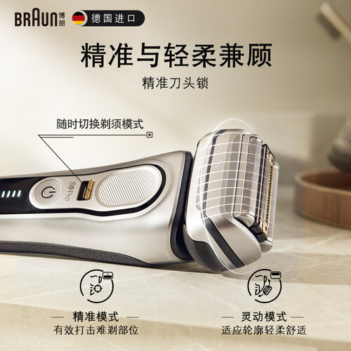 博朗9系剃须刀再次升级,采用4+1精准刀头,从须根处剃除,更加干净。强劲马达,每秒35000次剪切,快感一触即发。