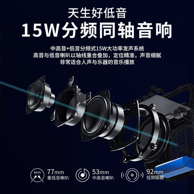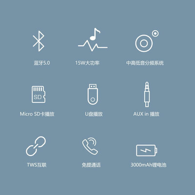 选用蓝牙5.0稳定传输,享受更顺畅。tws互联,可智能免提通话,方便快捷。中高低音分频系统,打造定制化音质感受。