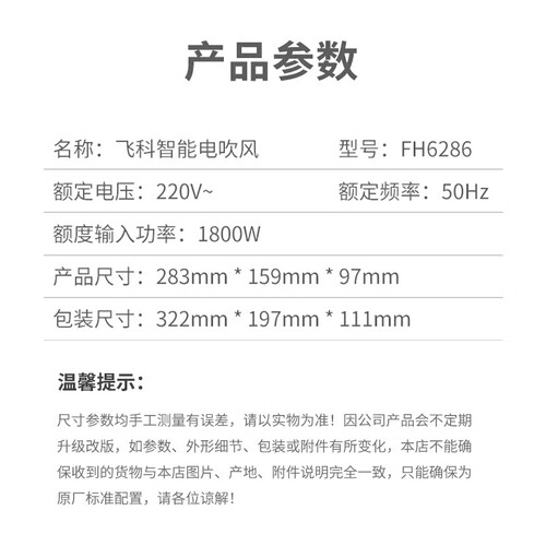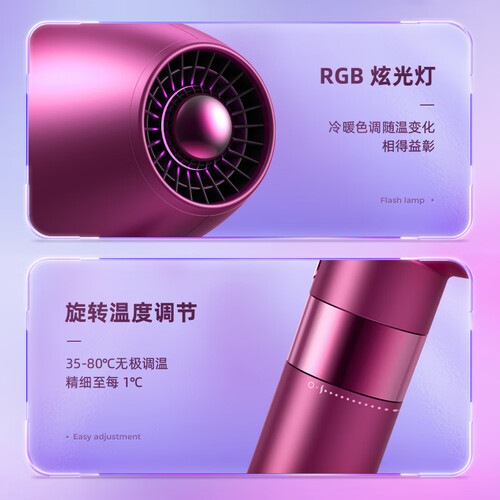 无极旋转调温,精细调控每度,致力于为不同发丝提供适宜干发体验。LED智能显示,随时都可掌控运行情况,享现代智能吹发。