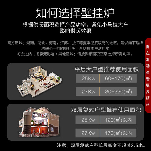 采用壁挂式设计,合理利用墙壁空间,小户型家居可放心使用。而冷凝式技术,一级能效,节能省气减少家庭日常开销。
