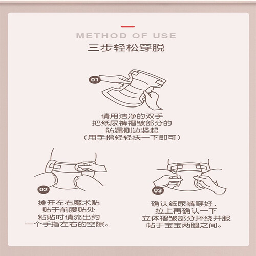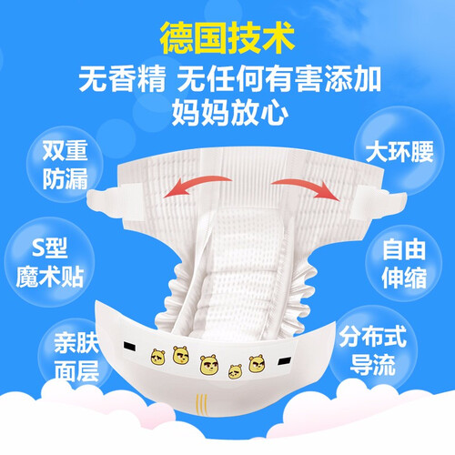 专业的S型魔术贴设计,没有任何锯齿花纹,适合宝宝娇嫩的肌肤。侧边的双重防水科技,不怕宝宝贪玩乱动。