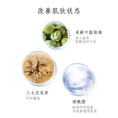 有三七总皂苷、烟酰胺等6大明星成分加持,肌肤更细嫩。淡化鱼尾纹、抬头纹等肌肤细纹,令肌肤变得饱满紧实充满年轻活力。