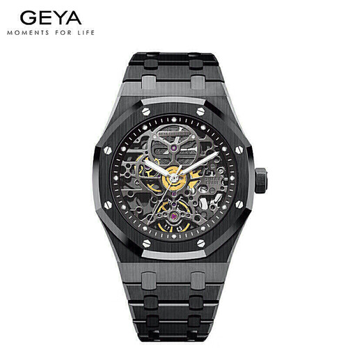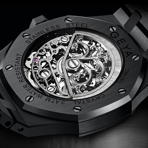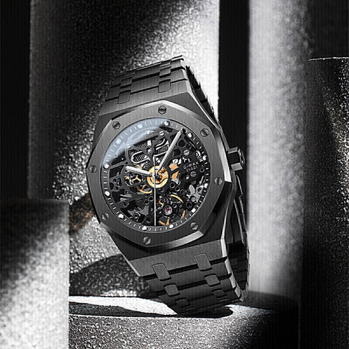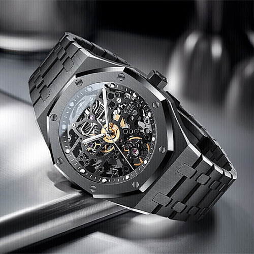 采用不规则的线条制作的表盘,棱角分明举手投足间挡不住的硬朗魅力。精密机械镂空构造,给你看的见的机械魅力。