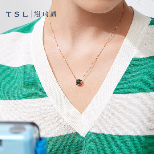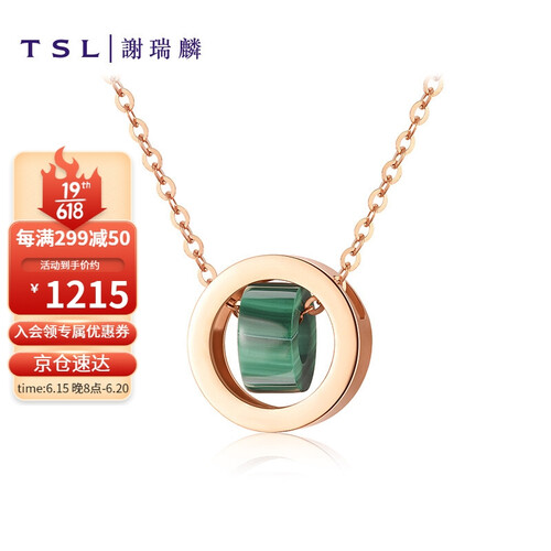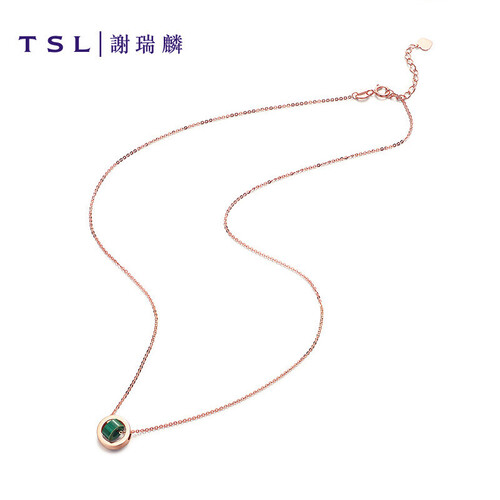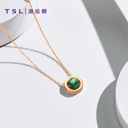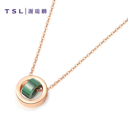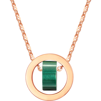 交织旋转的双环造型,精选不易变形的K金材质,视觉立体感十足。搭配深邃的孔雀石设计,点亮整体造型,突出锁骨骨感美。