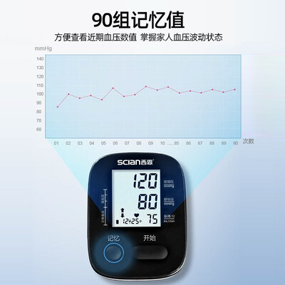 内置智能芯片,采用经典示波法测量,测量数据更精准;全新自动智能加压技术,减少对手臂的压迫感,使用舒适,大屏大字看得更清。