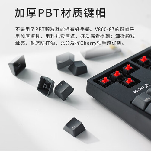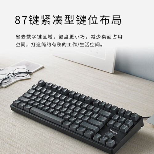 人体工学设计,四阶六排键帽,贴合手指运动轨迹,长时间打字更舒适省力。87键紧凑键位布局,为你释放更多桌面空间。