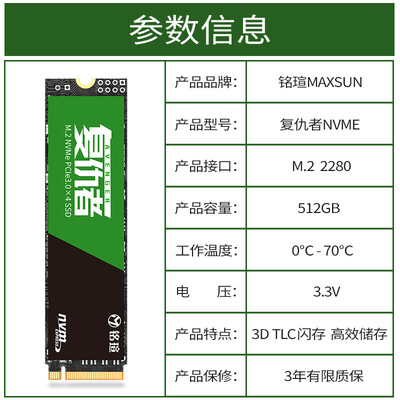 铭瑄复仇者系列512G固态硬盘,读取速度达到2000MB/s,有效避免电脑卡顿。SMI第二代PCle主控,运行更流畅。