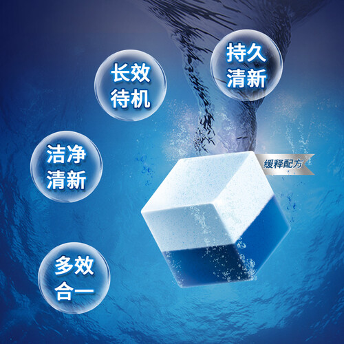 多效合一的洁厕块,采用缓释配方,遇水能够匀速溶解,洁净效果更加持久。还能有效去除异味,清新抑菌,持久留香。
