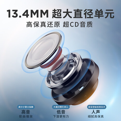 13.4MM超大直径单元,使得高低音更加出色,满足您对音质的挑剔。连接快速稳定,避免在公众场合与他人的手机配对。