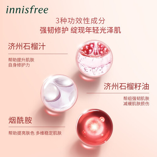 蕴含济州生石榴汁和石榴籽油精粹,快速为肌肤补水的同时帮助肌肤锁住水分,调节肌肤水油平衡,提升肌肤水润力和自身呵护力。