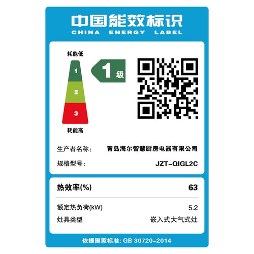 采用立体进风燃烧系统,热效率高达63%,达到1级能效标准,更节能省气。自动意外熄火保护,烹饪更放心。