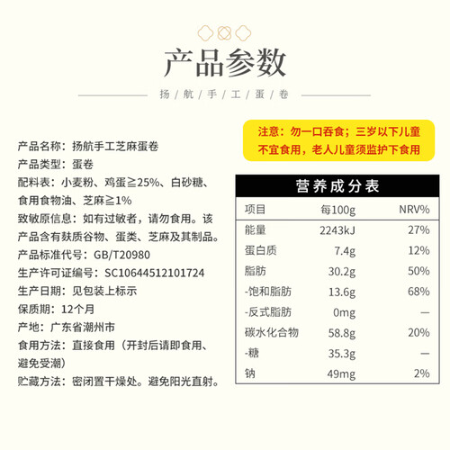 扬航 手工芝麻鸡蛋卷酥