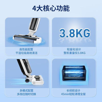 洗拖洗三合一,干湿垃圾一机搞定。小身材更轻便,自牵引更省力,连孩子都能轻松使用。45分钟长续航,大户型不在话下。