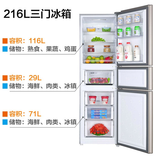 大容量分区储鲜三门冰箱精选