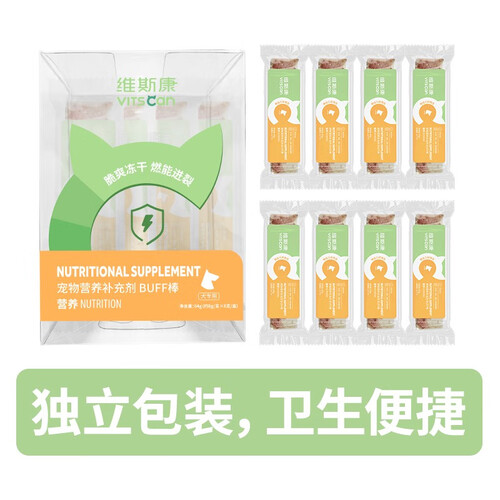 使用上好牛乳搭配真果粒,补充钙质和满满的维C,一口一条,好吃又营养,为宠物注入满满能量感。独立包装干净卫生。