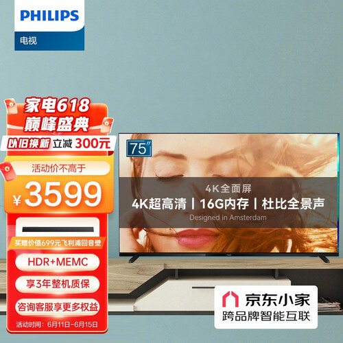 采用三面无边框设计,整个屏幕浑然一体,尽享沉浸之美。4K超高分辨率,加持HDR-Plus技术,带来更惊艳的显示效果。
