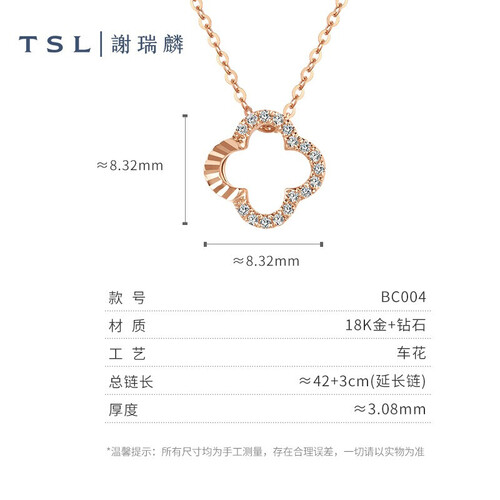 谢瑞麟 幸运四叶草K金吊坠