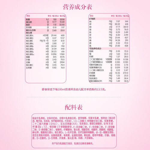 小分子羊乳配方,肠道好吸收,呵护宝宝稚嫩的肠胃。口味清淡不腥不膻,宝宝更容易接受,满足挑剔的味蕾,均衡膳食改善挑食。