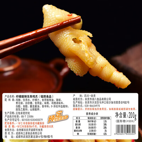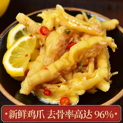 去骨鸡爪制作,含有丰富的胶原蛋白,越吃越想吃。还用了柠檬汁进行调味,又酸又辣的口感,可以改善味蕾,增强食欲。