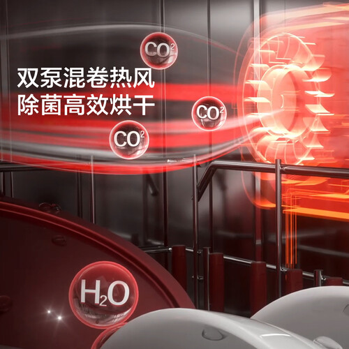 72℃高温+纳米粒子净化,能够去除餐具上的有害物质,呵护家人健康。双泵热风环流,更快干燥餐具,清爽净味。