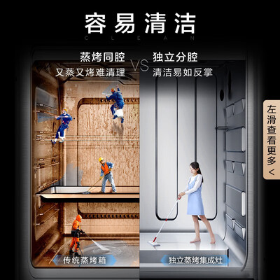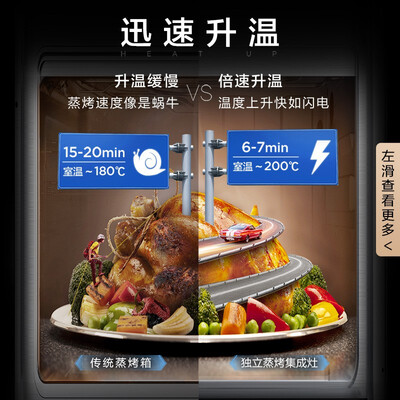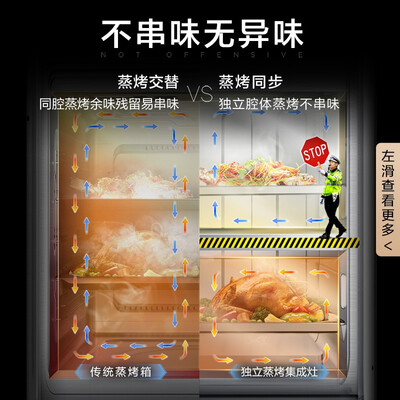设有3D循环烘烤功能,可均匀烘烤食物,令食物更加酥脆鲜香。拥有飓风大吸力,可快速洁净厨房油烟,保持厨房清新洁净。