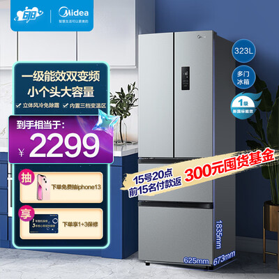 美的 一级能效风冷无霜冰箱