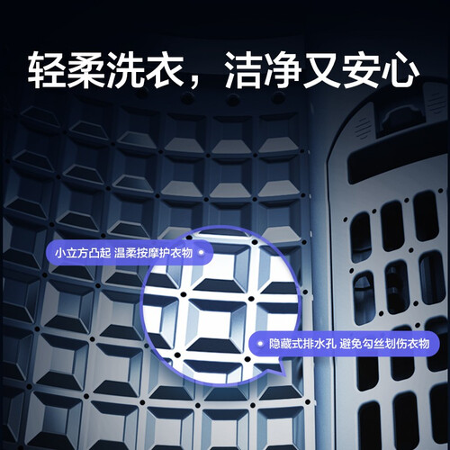 采用六道宽幅水流,充分浸泡洗涤剂,强劲去除衣物上的污渍,清洁更彻底。结合立方内桶设计,温和去除衣物上的污渍。