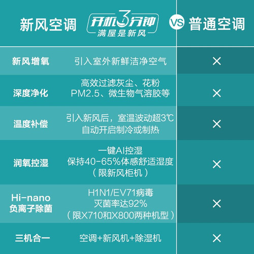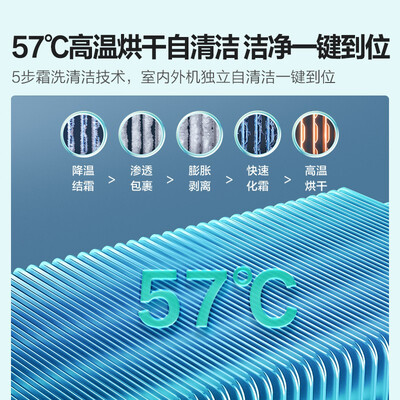 采用微正压富氧新风系统,开机三分钟,实现满屋子新风。配合57℃的高温烘干自清洁,畅享清洁好空气,呵护家人健康。