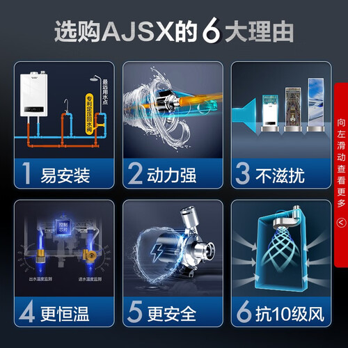 智能的恒温热水器,能够精准的控温,减少水温波动。多种安全保护技术,十分安全,给家人用着更安心。