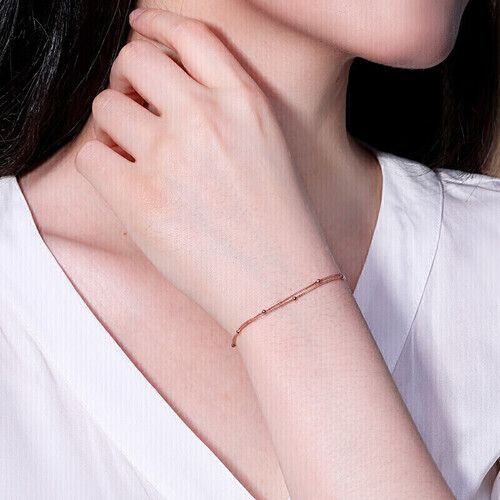 双链圆珠设计,呈现立体美感,增添整体层次性,更显时尚别致。选用18K金材质,色泽亮丽,更衬腕间白皙肤色。