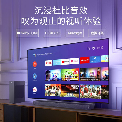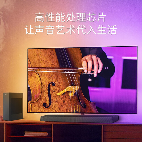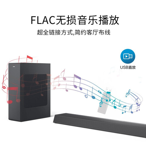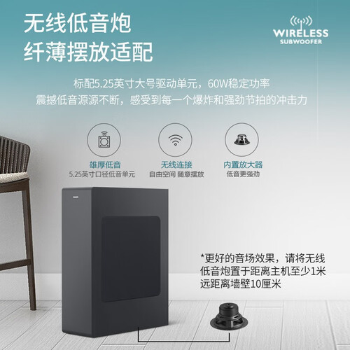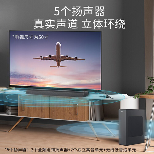虚拟环绕声的设计,更少于传统音响的喇叭数量,呈现更丰富的音效。蓝牙无线连接的设计,更方便实用。