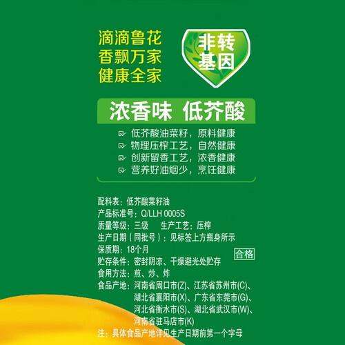 鲁花 香浓纯正低芥酸菜籽油