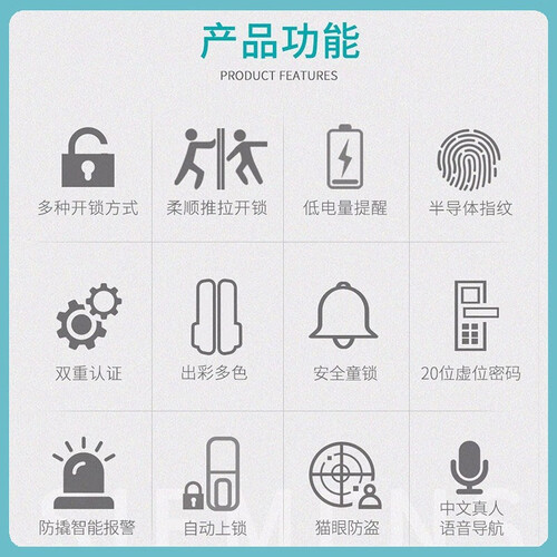FPC半导体指纹,速度更快,安全性强,降低指纹错误识别。虚位密码,输入正确密码前后可输入任意数字,防偷窥。