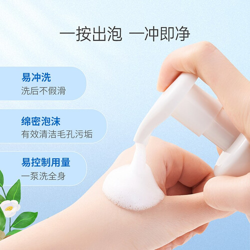 采用按压式的设计,可以更好的控制用量;选用无泪的配方设计,宝宝使用感更佳;添加山茶籽油成分,呵护宝宝娇嫩肌肤。