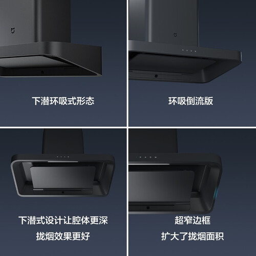 搭载直径为256mm大风轮,可高速平稳运转,有效提升吸排净烟的速率。T型机身设计,时尚美观还可嵌入橱柜,节省占用空间。