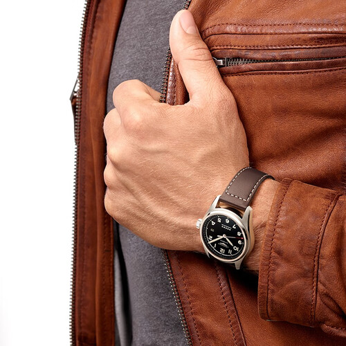 哑光黑色表盘,镶贴飞航表元素,提升表盘的立体感,视觉效果更好。经典字体时标,加持夜光涂层,标记清晰,暗光环境读时清晰。
