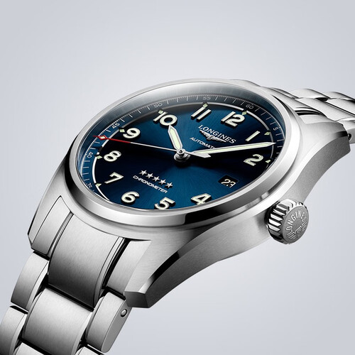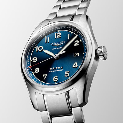 采用蓝色的太阳纹饰表盘,搭配镶贴元素指针,带来一丝独特的优雅魅力。经过6颗螺钉固定的后盖,密封性好,运动风十足。