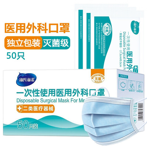 海氏海诺医用外科口罩,独立包装,携带更方便。三层防护,过滤效率高,守护你的每一次呼吸。亲肤无纺布,轻柔透气,佩戴更舒适。