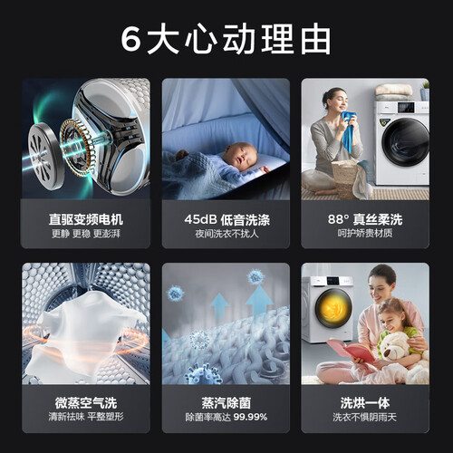 DD磁悬浮直驱变频技术,大直径动力足,提速更快,并且运行起来声音低至43分贝,可从源头降噪不扰家人休息。