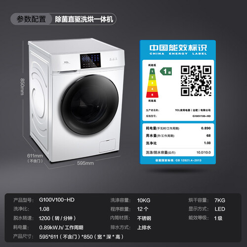 TCL 直驱变频V100洗衣机