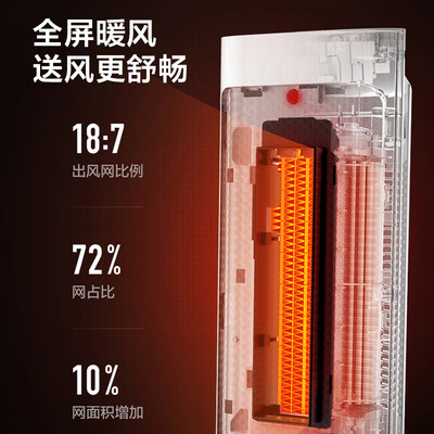专利铝制斜风轮,风量大,噪音小,无需担心锈蚀问题。可实现70°范围摇头送风,送暖范围大,无论站坐都能享受温暖。
